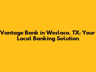 Are you looking for a reliable and community-focused bank in Weslaco, Texas? Look no further! Vantage Bank is here to serve you with a wide range of financial services tailored to meet your individual and business needs. In this article, we’ll dive into what makes Vantage Bank a great choice for the residents and businesses of Weslaco.