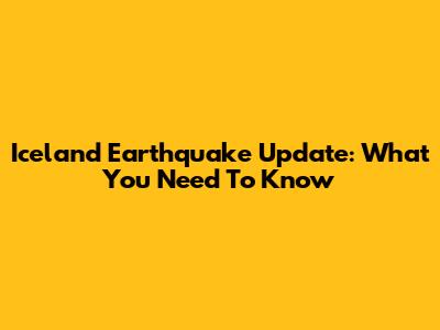 Iceland Earthquake Update: What You Need To Know
