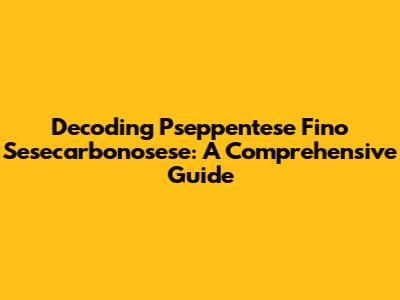 Decoding Pseppentese Fino Sesecarbonosese: A Comprehensive Guide