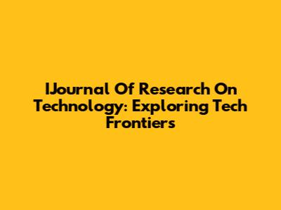 IJournal Of Research On Technology: Exploring Tech Frontiers