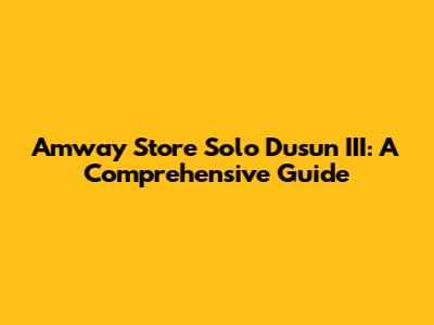Amway Store Solo Dusun III: A Comprehensive Guide