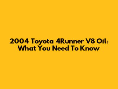 2004 Toyota 4Runner V8 Oil: What You Need To Know